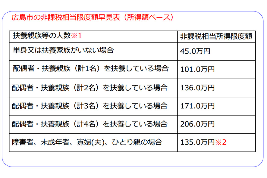 ※2 この金額を超える場合、早見表の「扶養親族等の人数」に応じた「非課税相当所得限 度額」を適用します。